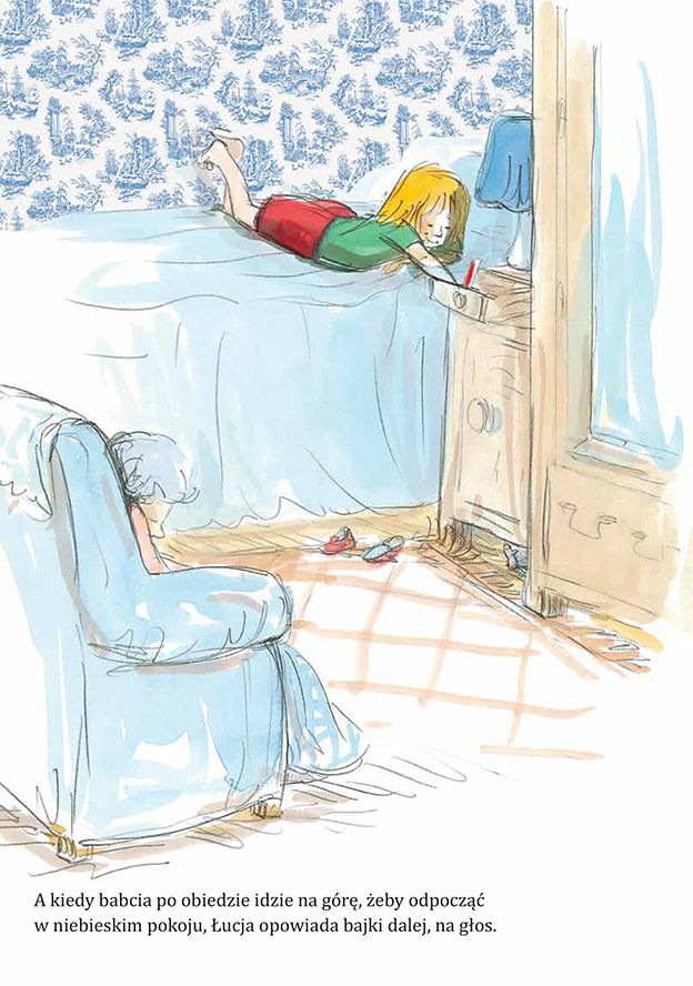 Łucja i niebieski pokój to ciepła, urocza historyjka o przyjaźni między wnuczką a babcią, u której można znaleźć zrozumienie, spokój i przeżyć najpiękniejsze chwile dzieciństwa podróżując po krainie wyobraźni.